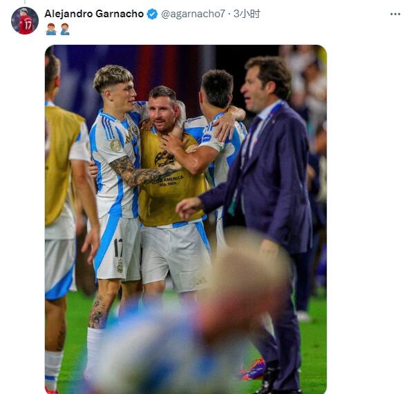 决赛中全场无视梅西?加纳乔晒拥抱梅西照辟谣:♂️