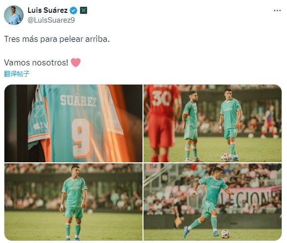 7月22日讯 迈阿密国际在昨晚的比赛2-1击败芝加哥火焰,老将苏亚雷斯登场。他也在赛后晒出了自己的比赛照,并配文:“再添3分继续领跑,让我们继续战斗!”迈阿密国