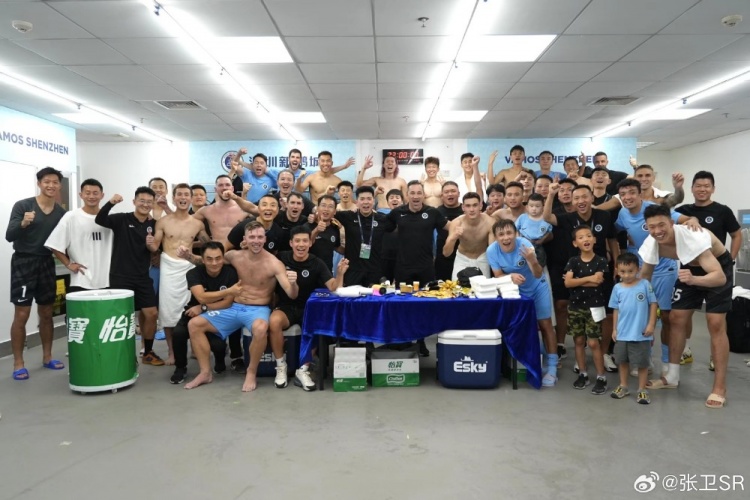 7月22日讯 中超第24轮,深圳新鹏城2-1长春亚泰,此役,深圳新鹏城球员张卫首发出场。赛后,张卫社媒分享球队在更衣室庆祝胜利的照片,并配文:“团队、胜利、继续。”