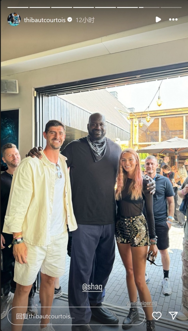 7月23日讯 库尔图瓦更新社媒动态,晒出与篮坛传奇奥尼尔的合照。