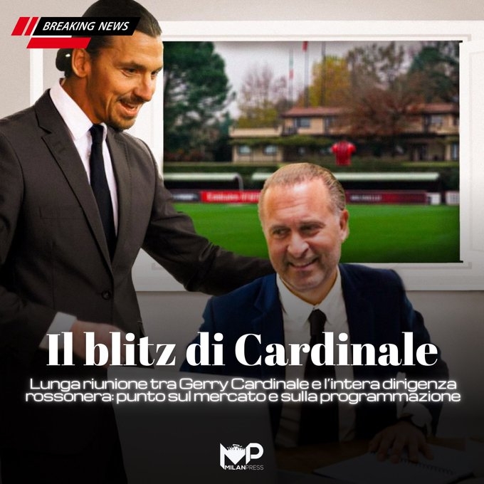该记者透露,米兰老板卡迪纳莱在今天早上抵达米兰城,并且和俱乐部管理层(包括斯卡罗尼、富拉尼、伊布、蒙卡达等人)进行了长达6小时的会议。
