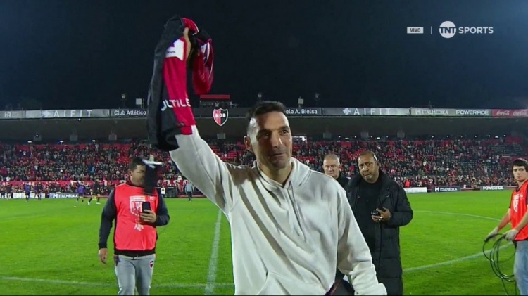 在对阵里瓦达维亚独立赛前,母队纽维尔老男孩向斯卡洛尼颁发纪念品和球衣,这位国家队功勋主帅收获了全场球迷的掌声。