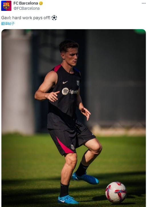 巴萨官推晒出了加维正在进行有球训练的照片,并配文:“加维:付出终会收获回报。”
