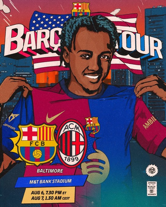 7月24日讯 巴萨将在美国行对阵米兰,俱乐部官推也发布了预热海报。