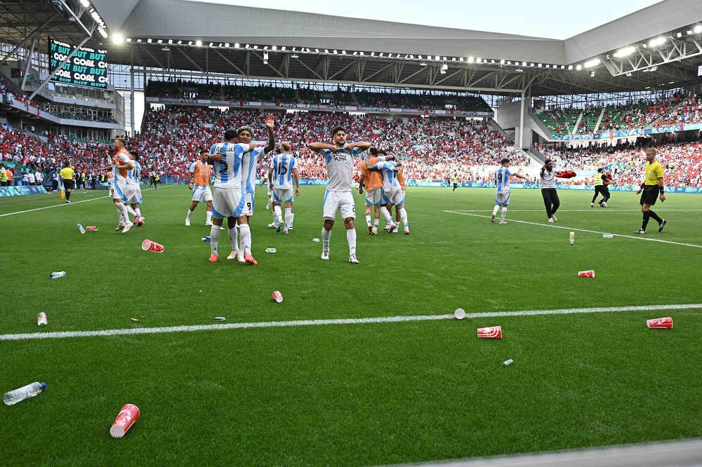 7月25日讯 2024年巴黎奥运男足小组赛B组第1轮,阿根廷U23对阵摩洛哥U23比赛因球迷投掷杂物并闯入场内中断。