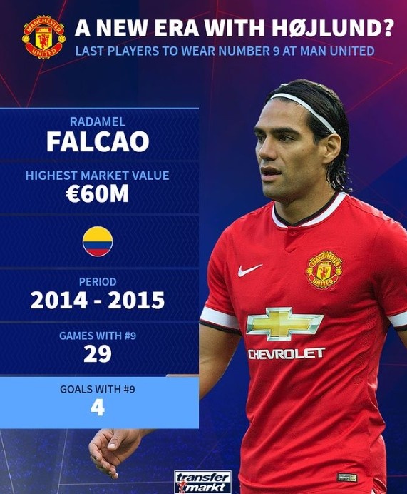 德转列曼联近年9号:法尔考、马夏尔、伊布、卢卡库、霍伊伦