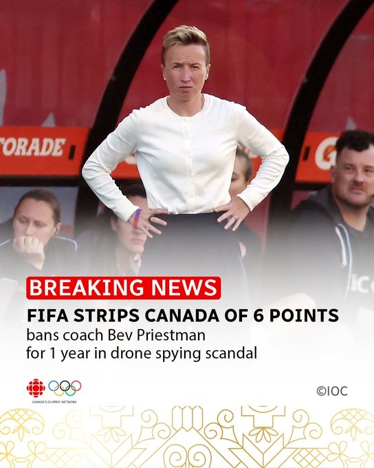 重罚!官方:加拿大女足因无人机偷拍被扣6分,主帅禁赛一年