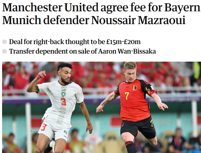 英媒表示,曼联正在积极推进拜仁右后卫努马兹拉维的转会。曼联同意以1500万至2000万英镑的转会费签下马兹拉维,但这笔交易的潜在障碍是曼联需要出售万比萨卡以筹集资金。