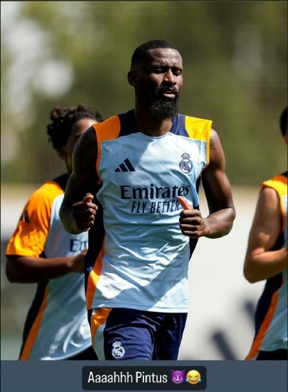吕迪格社媒晒季前训练照,一脸生无可恋的表情,并配文:Aaaahhh Pintus