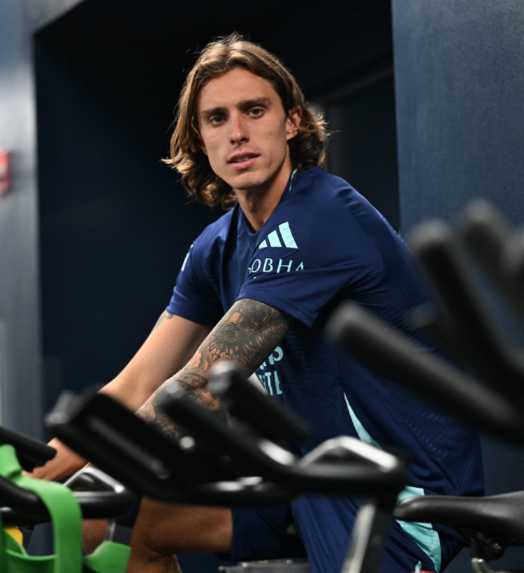 阿森纳官方晒卡拉菲奥里参加球队训练图:第一天