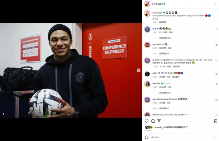 帽子戏法!姆巴佩更新社媒:大获全胜重夺榜首
