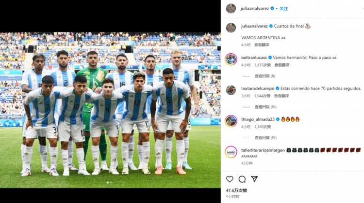 开门黑后两连胜!阿根廷众将社媒庆祝晋级奥运男足八强战