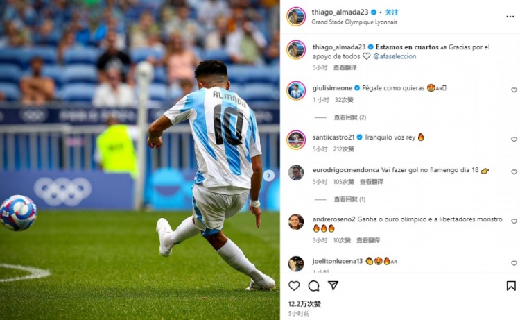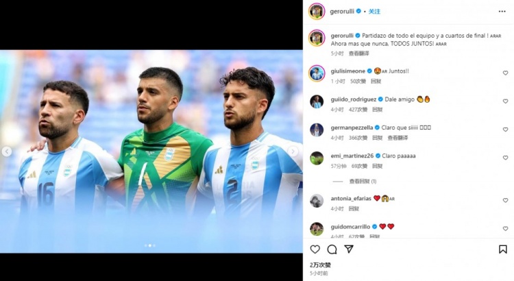7月31日讯 阿根廷在奥运男足小组赛第3轮2-0力克乌克兰,从而以小组第二晋级八强战,多位球员也通过社媒发文庆祝。