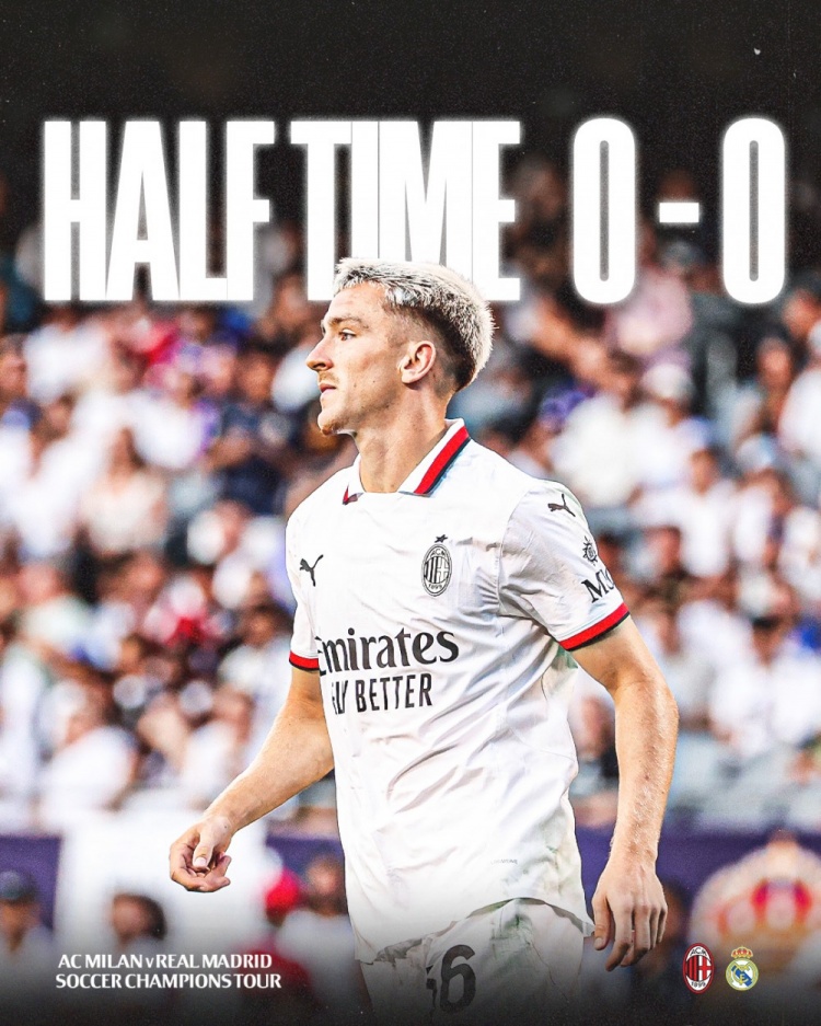 伤停补时1分钟。上半场比赛结束,皇马0-0米兰。