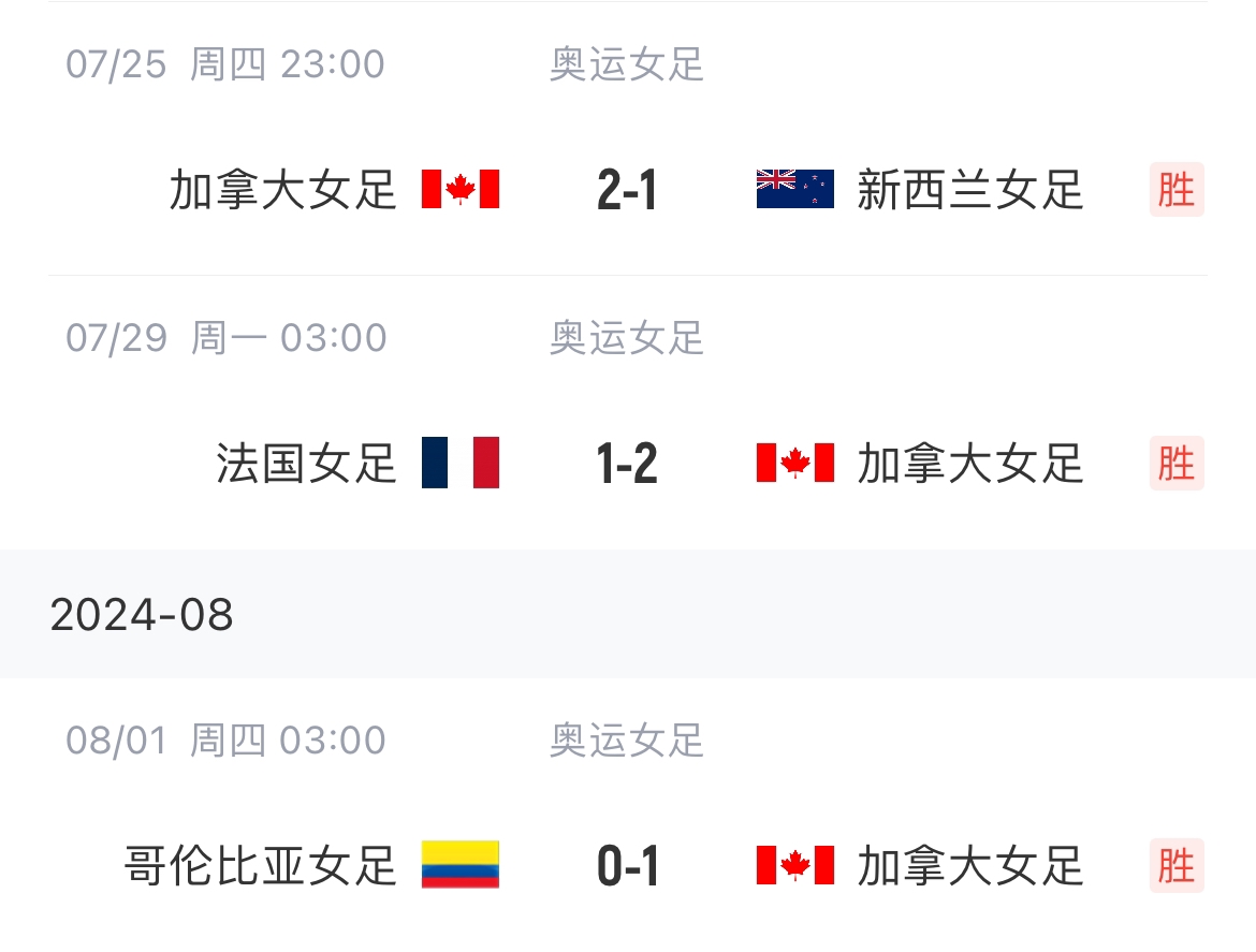 08月01日讯 奥运女足小组赛结束全部对阵,加拿大女足在被扣6分的情况下三连胜出线。