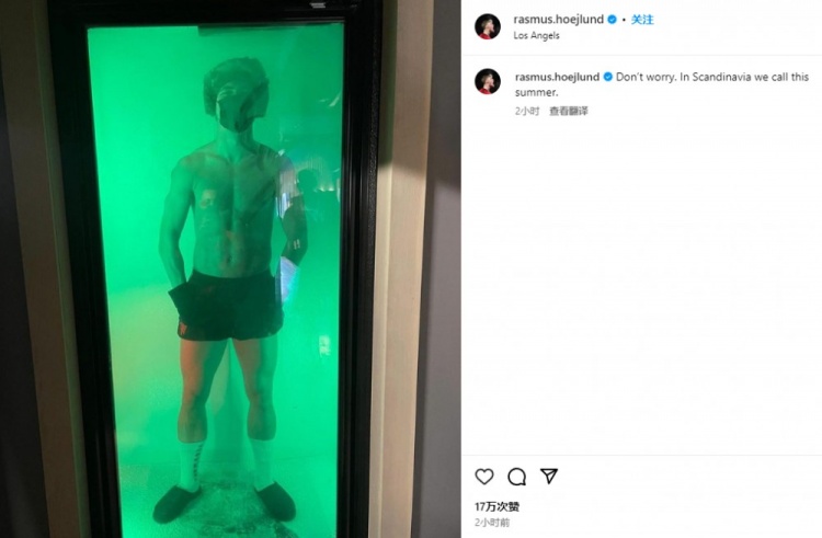 8月2日讯 曼联中锋霍伊伦确认伤缺6周,他也通过社媒晒出自己接受冷疗的照片。霍伊伦还调侃道:“别担心。在斯堪的纳维亚,我们把这(温度)当成夏天。”超低温冷疗