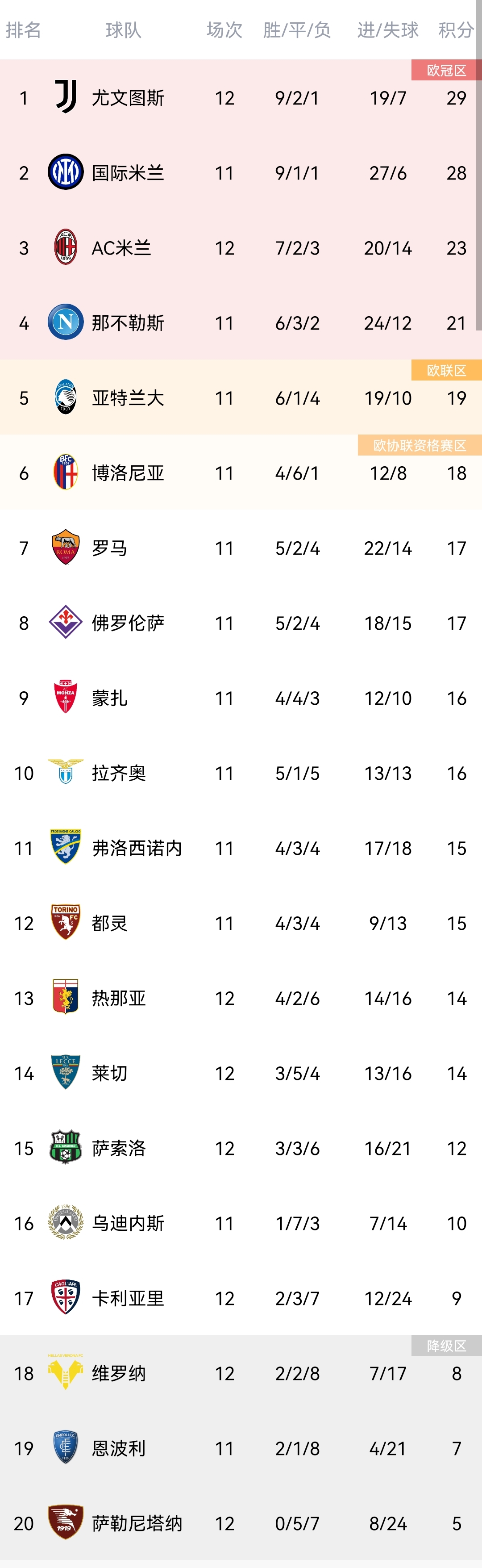 意甲积分榜:尤文豪取5连胜,先赛一场暂登顶