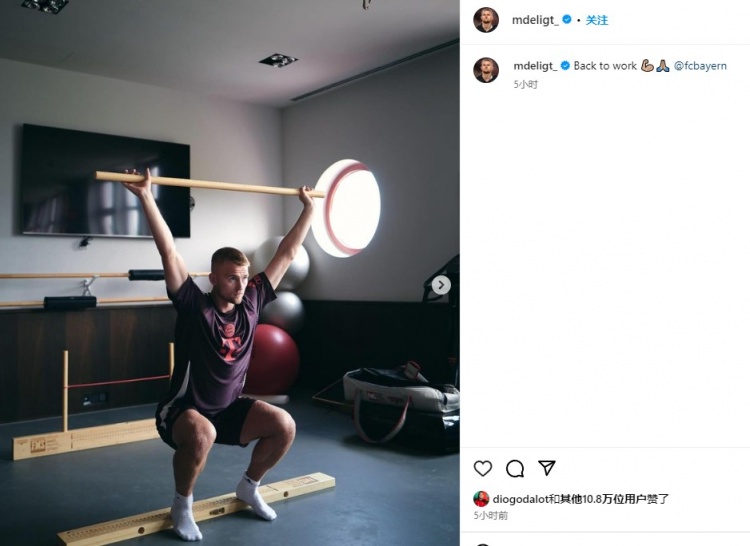 是走是留?德里赫特回归拜仁晒健身照,达洛特点赞