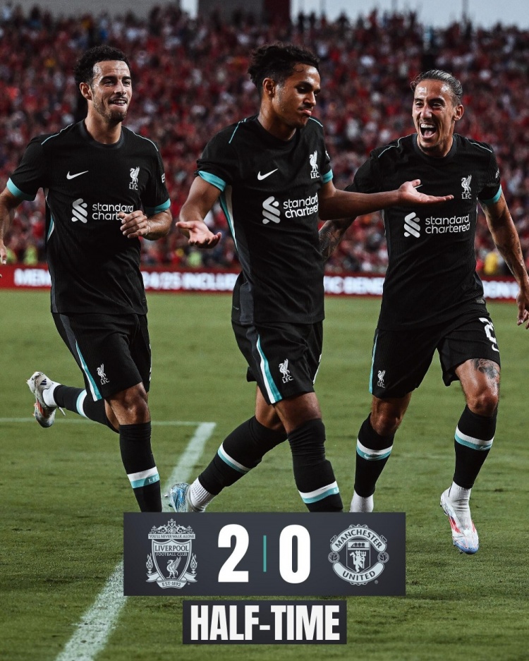 8月4日讯 北京时间7:45,季前友谊赛曼联vs利物浦。上半场,若塔助攻法比奥-卡瓦略连场破门;萨拉赫助攻琼斯建功;凯莱赫多次扑救。半场结束,曼联暂0-2落后利物浦。