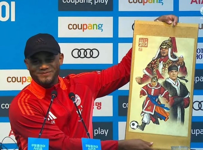 ——孔帕尼还在最后展示了自己收到的礼物,一份以自己为主题的韩国将军画