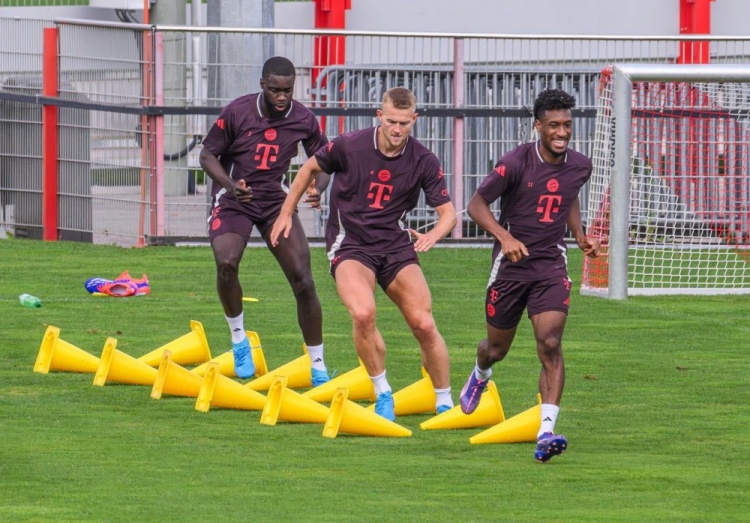 德国记者Victor Catalina就晒出了三人的训练照,并表示:“德里赫特、于帕梅卡诺和科曼正在进行高强度的训练,内容包括了冲刺和有球训练。”