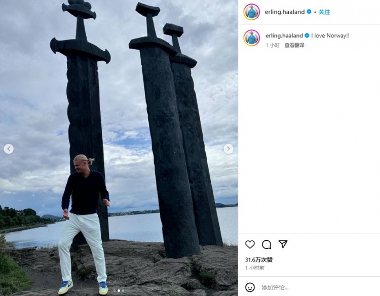 哈兰德也晒出自己的游玩照,并配文:“我爱挪威!”