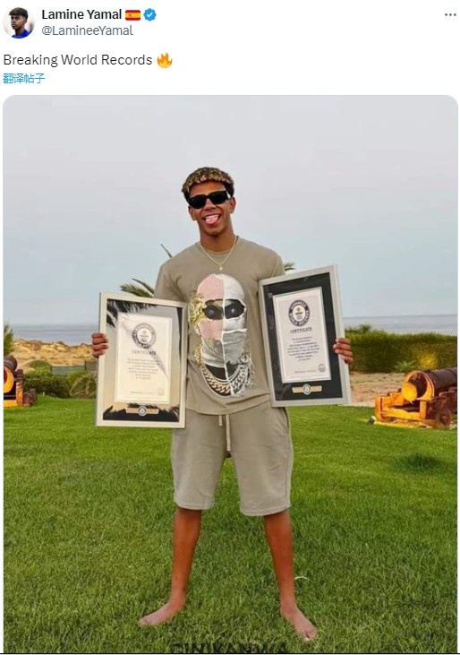 欧洲杯最年轻出场+进球!17岁亚马尔获得吉尼斯纪录牌匾