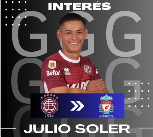 8月5日讯 阿根廷记者Germán García Grova消息,利物浦已经问价阿根廷俱乐部拉努斯19岁左后卫胡里奥-索莱尔。该记者透露:“利物浦问询了胡里奥-索莱尔的转