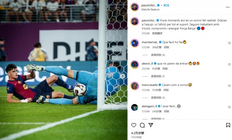 双响助巴萨击败皇马!保-维克托社媒:这样的时刻就是梦想成真