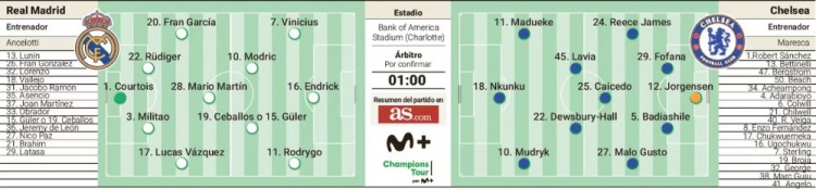 8月6日讯 北京时间8月7日周三早晨7点,皇马将在友谊赛迎战切尔西,《阿斯报》预测了两队首发。