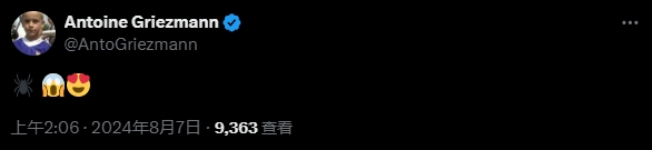 在罗马诺发布这一消息后,马竞球员格列兹曼更新社媒,发出了三个表情: