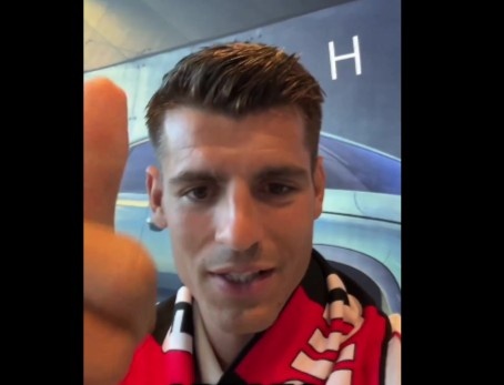 米兰新援莫拉塔飞抵米兰城,他面对镜头挥手致意。