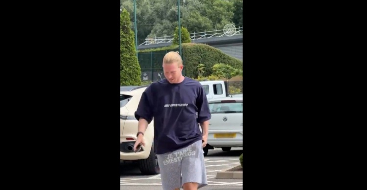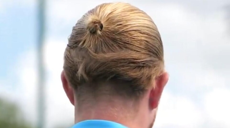 本周早些时候,德布劳内把自己的头发扎了起来,发型是在其身上罕见的丸子头。