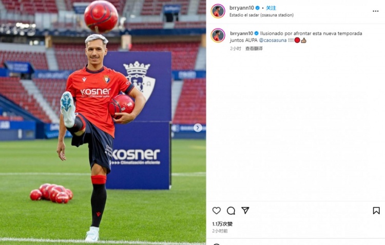 他还晒出了自己在奥萨苏纳的颠球照,并发文:“很高兴能够随奥萨苏纳迎接新赛季。”