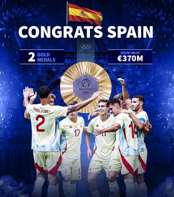 该记者指出:“阿根廷和西班牙在近年赢得的大赛冠军:2021美洲杯、2022欧美杯、2022世界杯、2024欧洲杯、2024美洲杯、2024奥运会。”
