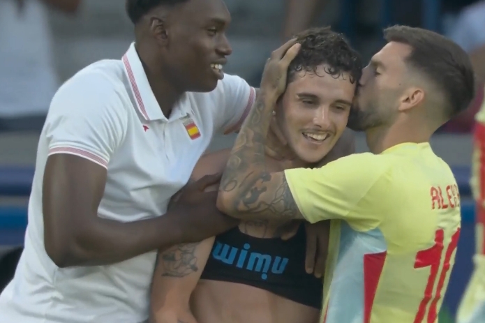 08月10日讯 巴黎奥运会男足决赛西班牙vs法国加时赛最后阶段,西班牙门将特纳斯手抛球直接助攻,替补登场的卡梅洛挑射梅开二度!西班牙5-3锁定胜局!