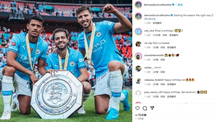 不过曼城最终有惊无险赢得冠军,B席也通过社媒晒出了自己和两位葡语系队友鲁本-迪亚斯和萨维奥的合照,并表示:“开启新赛季的绝佳方式。”