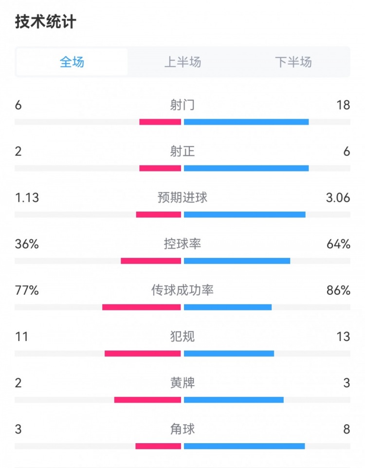 控球率36%-64%