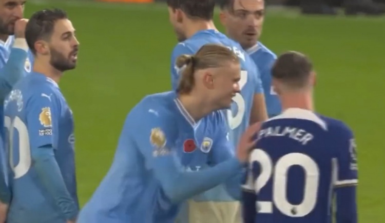 11月13日讯 英超联赛第12轮,切尔西4-4战平曼城。比赛中帕尔默想要去偷听曼城球员的战术,被身后走过来的哈兰德一把推开。今年夏天,帕尔默以4700万欧的转会费