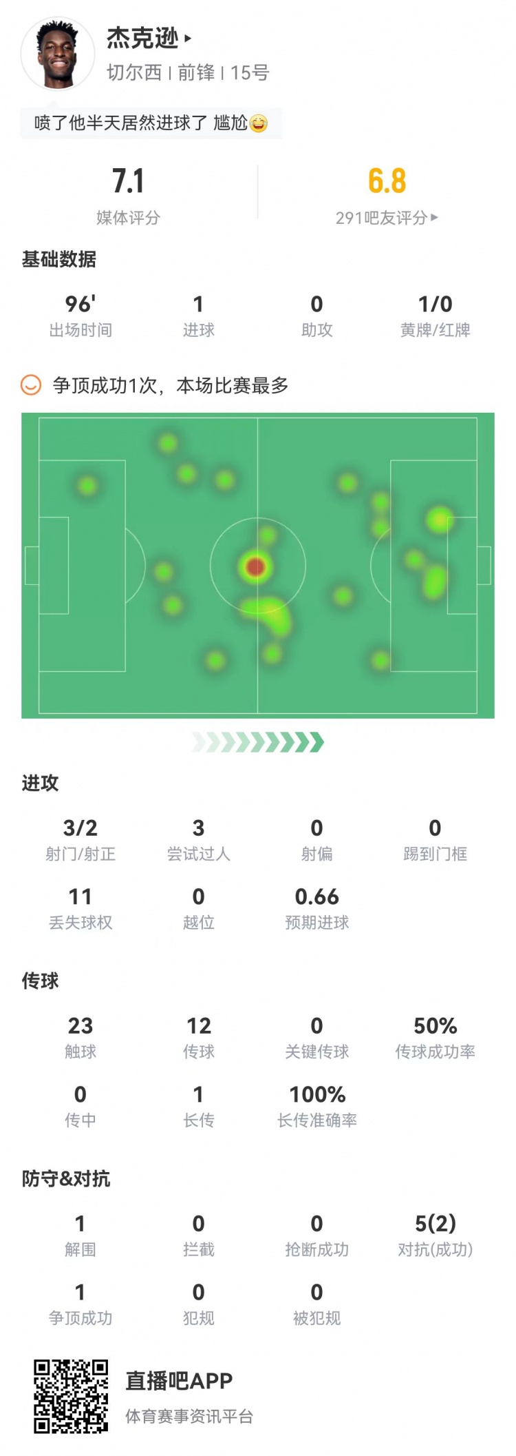 又臭又香杰克逊数据:50%传球成功率11次丢球权 喷半天进球了