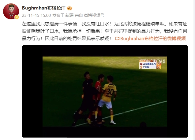 相关阅读:遭禁赛7场!布格拉汗:我没吐口水&无暴力行为,对处罚表示质疑