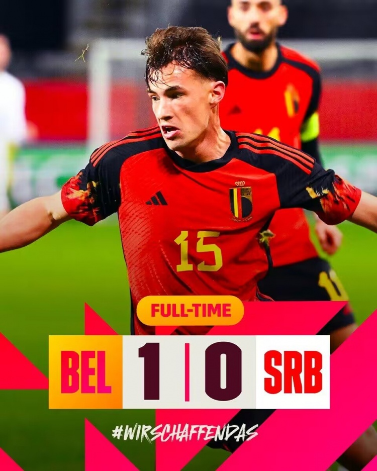 友谊赛对阵,比利时1-0击败塞尔维亚,卡拉斯科斩获全场唯一进球。