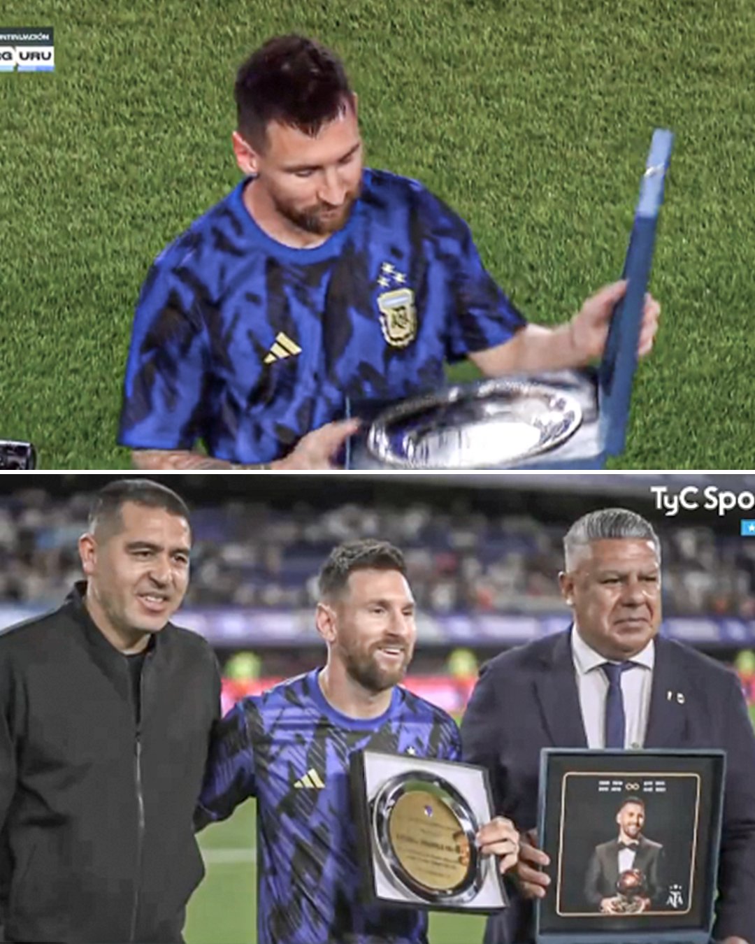 阿根廷在糖果盒为梅西颁发金球奖纪念盘,满满的仪式感!