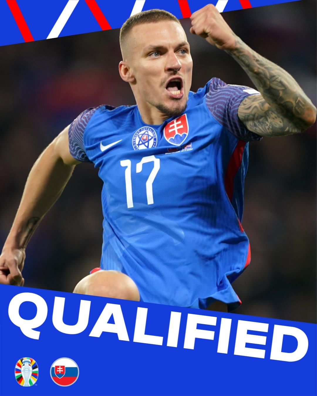 11月17日讯 欧洲杯预选赛J组第9轮,斯洛伐克4-2战胜冰岛,在仅剩1轮的情况下领先小组第3的卢森堡4分,提前晋级2024德国欧洲杯!