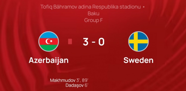 第57分钟,阿塞拜疆中场穆斯塔法扎德吃到红牌被罚下。瑞典没能在多打一人的情况下追回分差,第89分钟又丢一球,最终0-3惨败。
