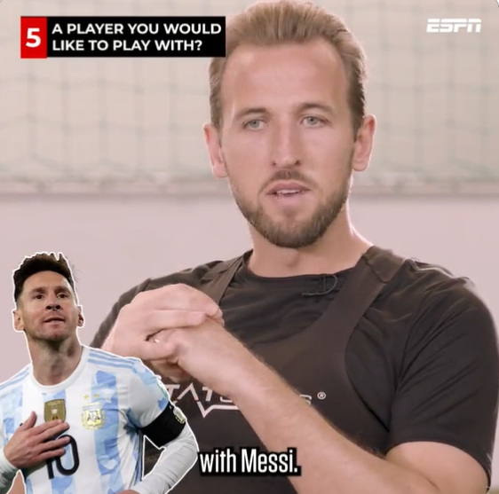 凯恩:我会想和梅西一起踢球,相信他能为我送出助攻