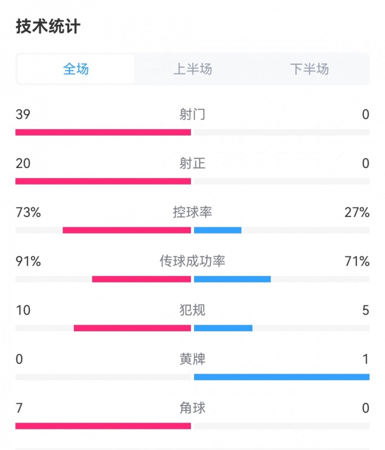 11月19日讯 欧预赛法国14-0狂胜直布罗陀创队史最大比分胜利,此役双方数据对比如下(法国在前):射门39-0射正20-0控球率73%-27%传球成功率91%-71%犯规10-5黄牌0-