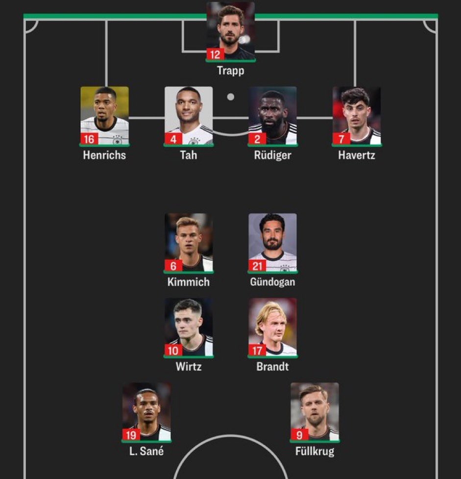 11月19日讯 德国对阵土耳其的友谊赛即将开打,在赛前公布的首发阵容中,纳格尔斯曼进行了阵容实验,让哈弗茨改踢左后卫。