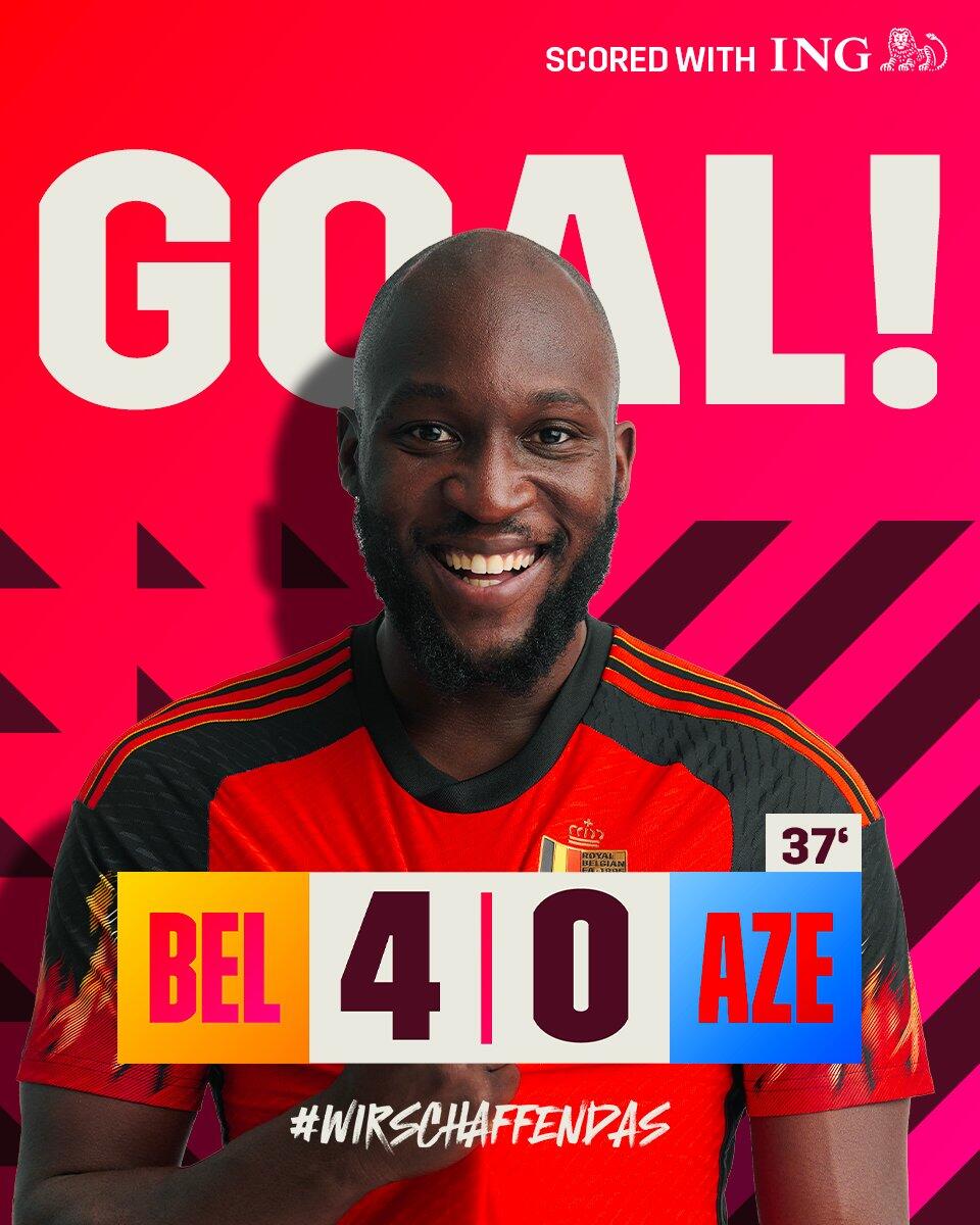 11月20日讯 欧洲杯预选赛第10轮,比利时主场对阵阿塞拜疆,卢卡库在第17、26、30、37分钟连入四球,20分钟内完成大四喜!比利时4-0领先阿塞拜疆!