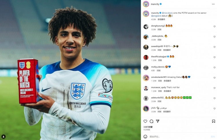 11月21日讯 欧洲杯预选赛第10轮,英格兰1-1战平北马其顿,里科-刘易斯本场比赛首发出战,完成英格兰国家队首秀。